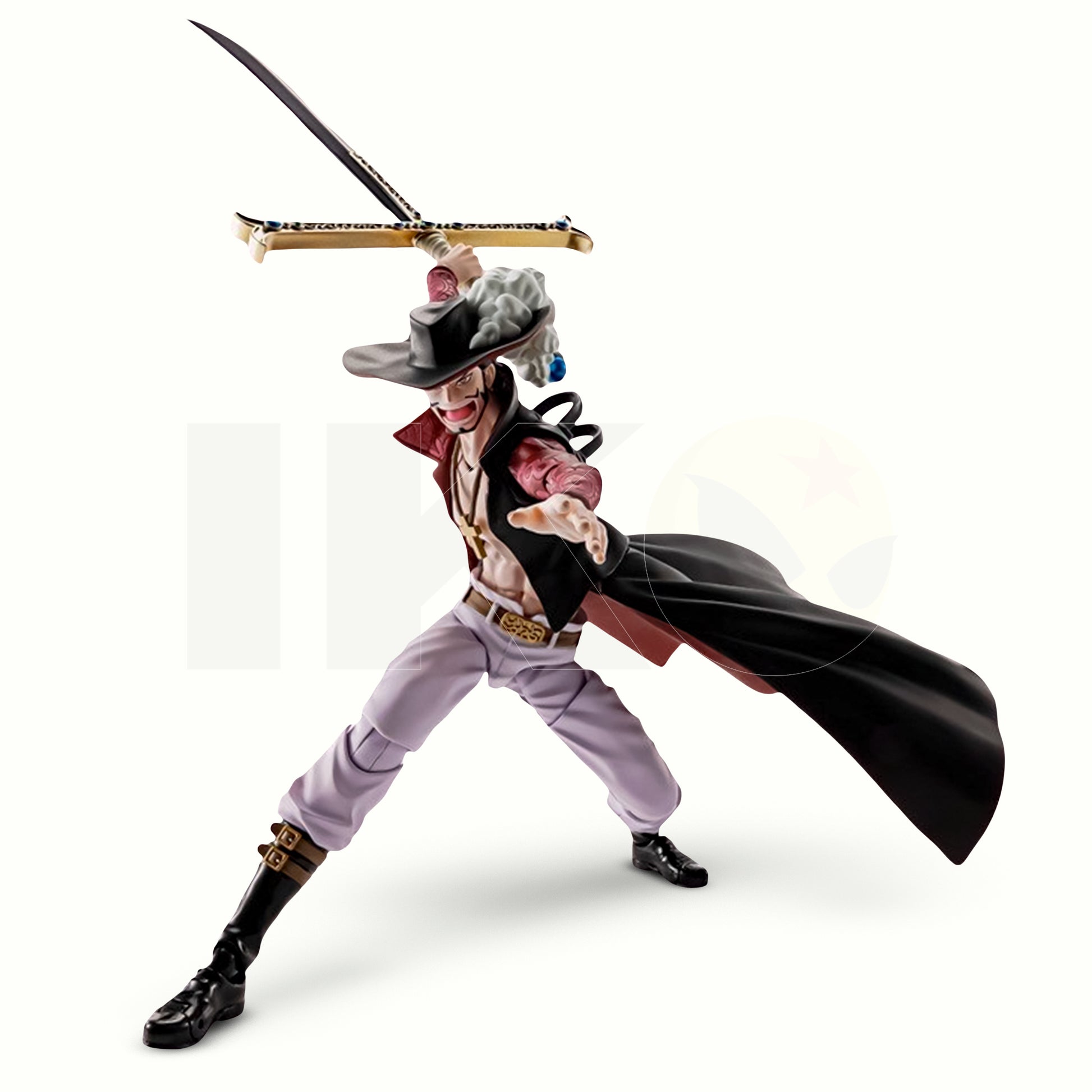 ¡Dracule Mihawk -Hawkeye- de One Piece se une a la línea S.H.Figuarts! Esta detallada figura está altamente articulada y viene con una gran variedad de piezas intercambiables para una selección impresionante de poses.